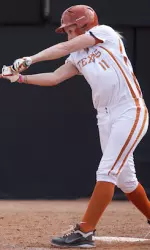 Texas responded in the third, using three-straight singles by Thom, senior catcher Amy Hooks and Taylor to start the inning. An RBI groundout by Schmidt scored Thom and an RBI infield single by sophomore Kim Bruins plated Taylor to cut the margin to 5-3.