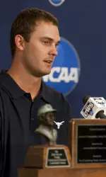 OMAHA, Neb. (NCBWA) - Texas junior pitcher Taylor Jungmann is the recipient of the 25th annual Dick Howser Trophy, presented by Easton Foundations, as college baseball's player of the year. The presentation was made Tuesday morning as part of a news conference at TD Ameritrade Park,